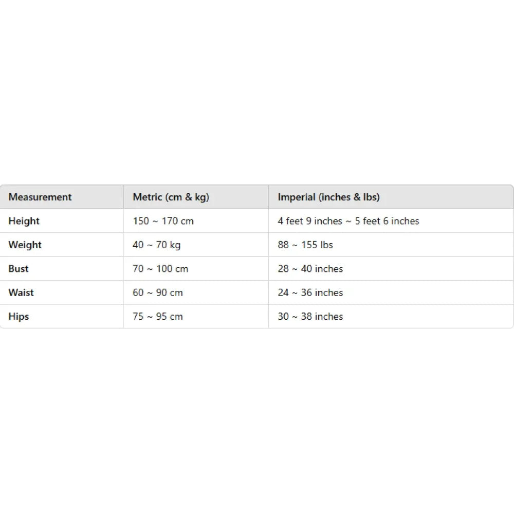 • The suggested size is just for your reference. If your measurement is floating between two sizes, advise choosing the larger size.(Measurements shown in the size chart refer to item measurements, not body)